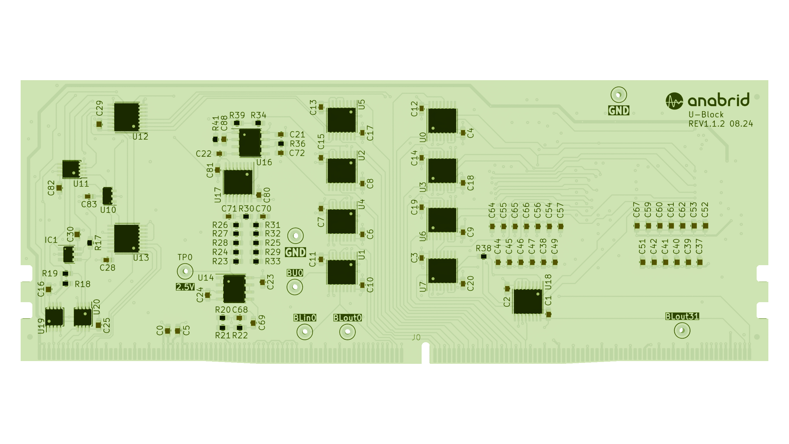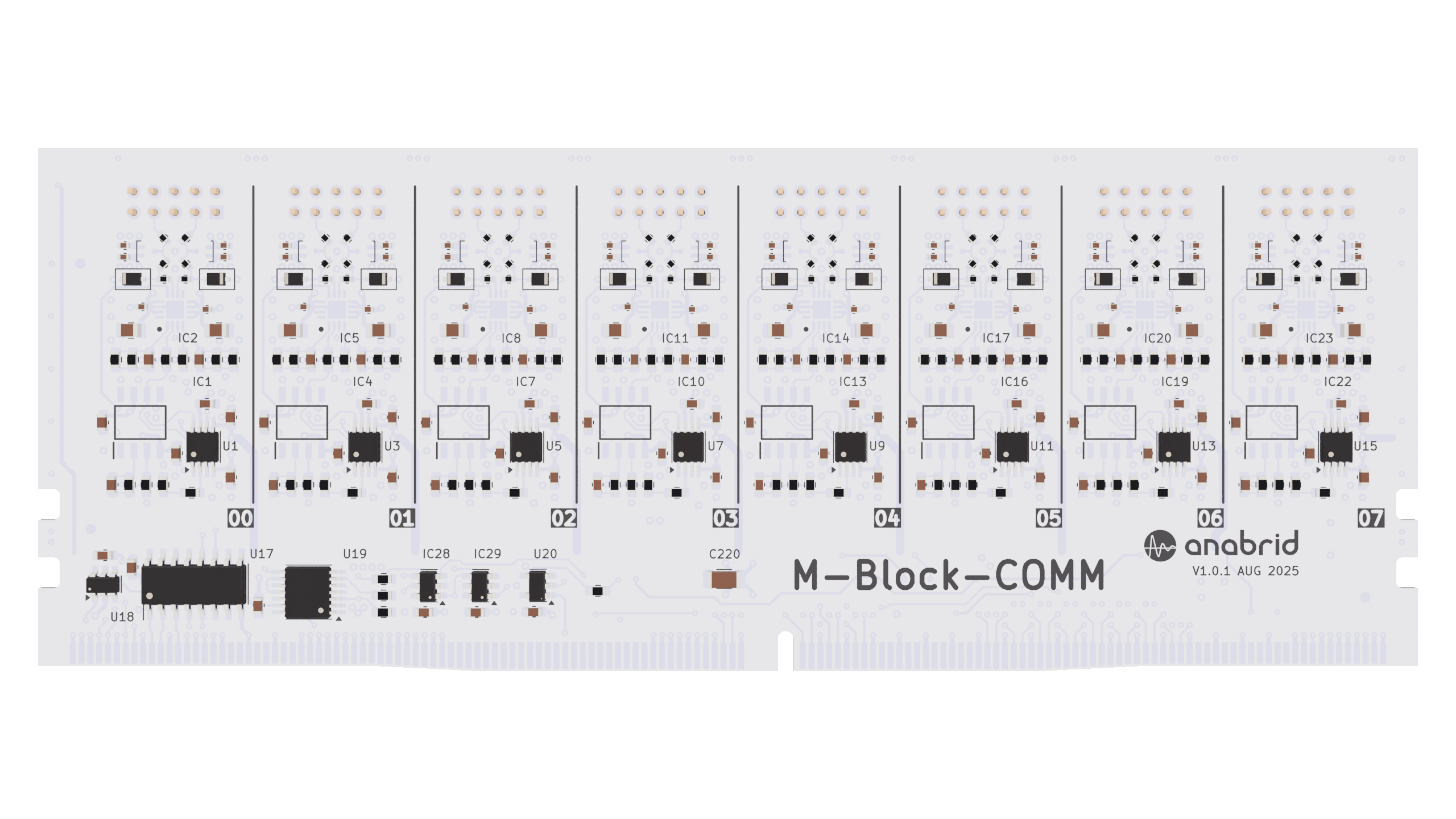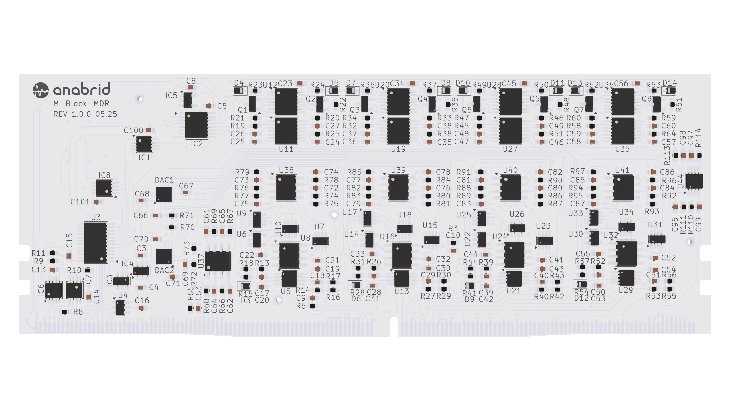 The carrier module provides the necessary mechanical and electronic connections between and to the individual DIMM modules, i.e. the blocks. It supplies the supply voltages, which are generated from a central supply voltage using DC/DC converters (point-of-load architecture). It also contains a high-accuracy precision reference voltage source that is used as a reference by all modules.