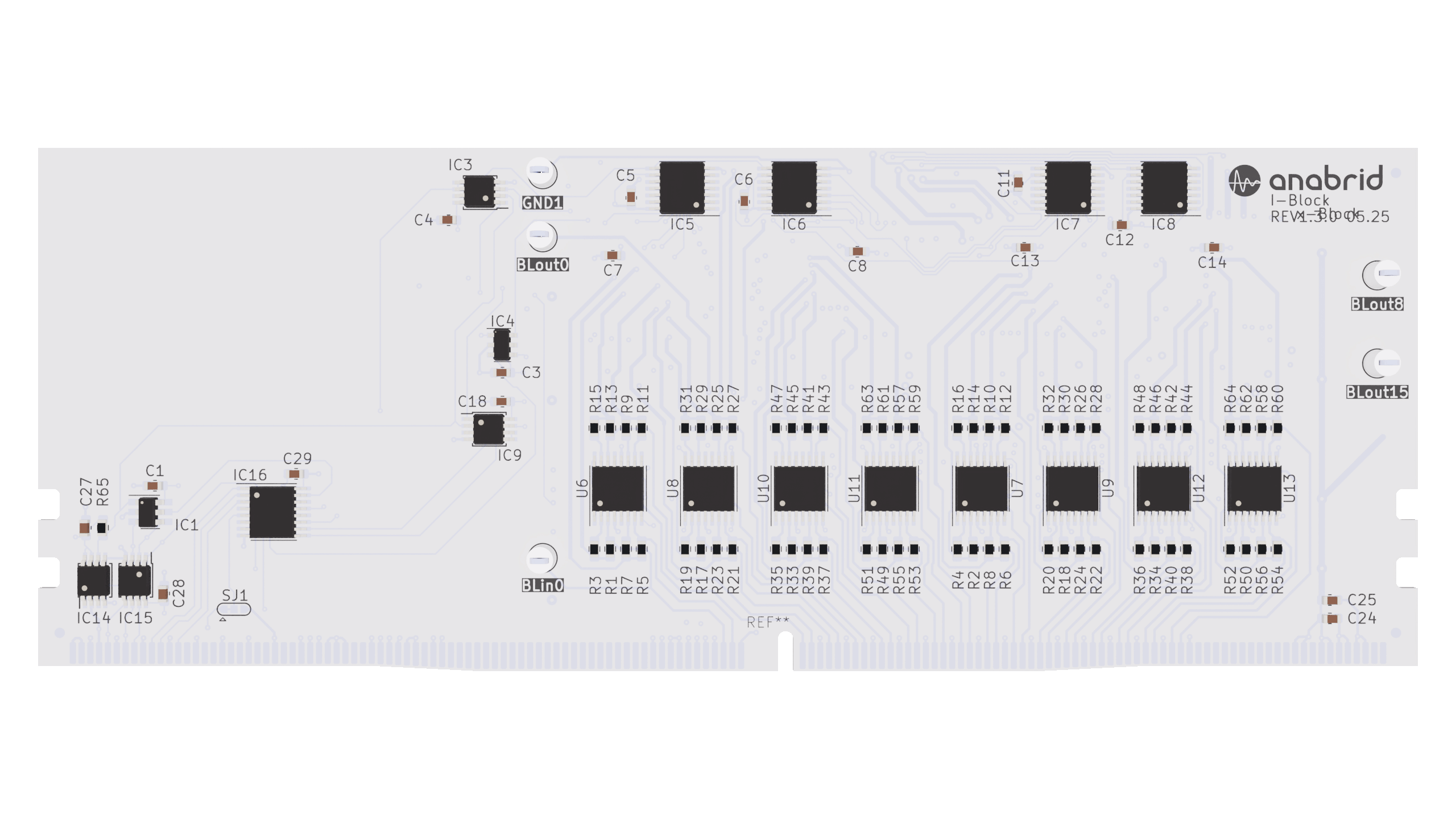 The task of the I-block is to route 32 values represented by currents to 16 output lines, whereby implicit summation occurs due to current coupling when more than one input current is routed to an output line. While the U block distributes 16 signals across 32 signal paths, the I block can combine these 32 signals back into a maximum of 16 output signals.
