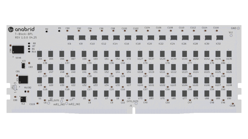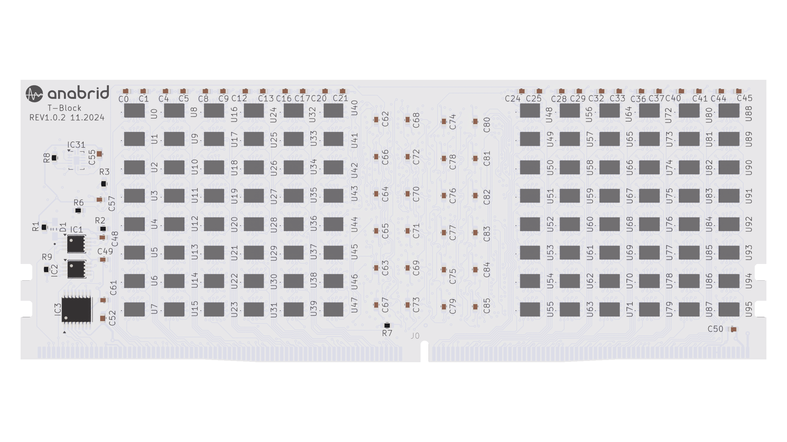 The T-block has 96 analogue inputs and 96 analogue outputs, each divided into 24 groups.